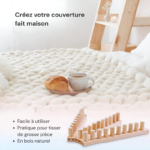 Cadre de métier à tisser en bois pour grosse laine à tricoter main permet de créer facilement des couvertures en grosse maille sans aiguille, juste avec vos mains. Le système de tissage en boucle simplifie chaque étape et rend l’activité plus agréable, même si vous débutez.
