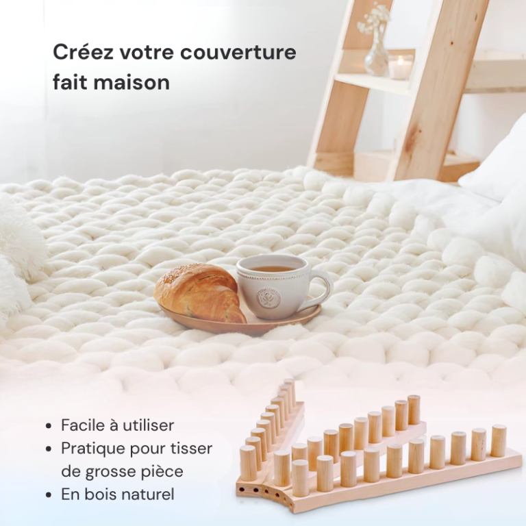 Le cadre de métier à tisser en bois pour grosse laine à tricoter main est pensé pour celles et ceux qui veulent créer des pièces en grosse maille avec plus de confort et sans complication.