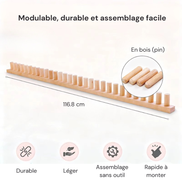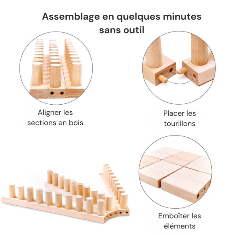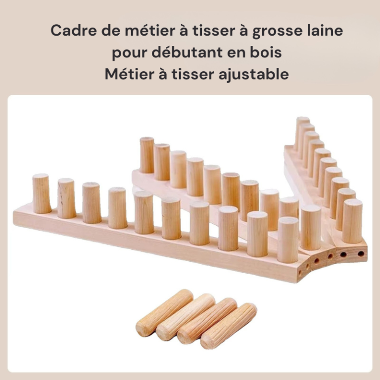 Fabriqué en bois solide, ce cadre offre une bonne stabilité pendant le tissage et reste fiable dans le temps. La prise en main reste simple et rapide, ce qui aide à avancer sans difficulté sur vos ouvrages.