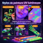 Les feutres fluorescents – 8 couleurs sont parfaits pour les festivals, les fêtes d’anniversaire, halloween ou toute occasion où vous voulez créer un rendu original et visible.