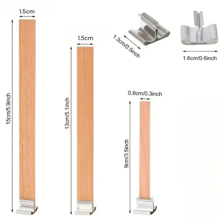 Mèches de bougie en bois avec base à clip offrent une combustion douce et agréable, idéale pour créer une ambiance chaleureuse à la maison. Fabriquées en bois de cerisier de haute qualité, elles sont pensées pour donner un bon rendu et une utilisation plus fiable. La base à clip permet de bien maintenir la mèche dans le contenant, ce qui aide à préparer vos bougies plus facilement.