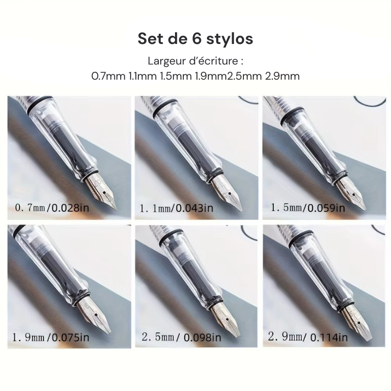 Le set de 6 stylos donne plus de liberté pour écrire, s’exercer ou partager. Il convient aussi bien pour un usage personnel que pour faire un cadeau à une personne qui aime écrire ou créer. La pointe de type standard permet une prise en main simple et s’adapte à plusieurs styles d’écriture, ce qui rend ce coffret pratique pour découvrir ou approfondir la calligraphie.